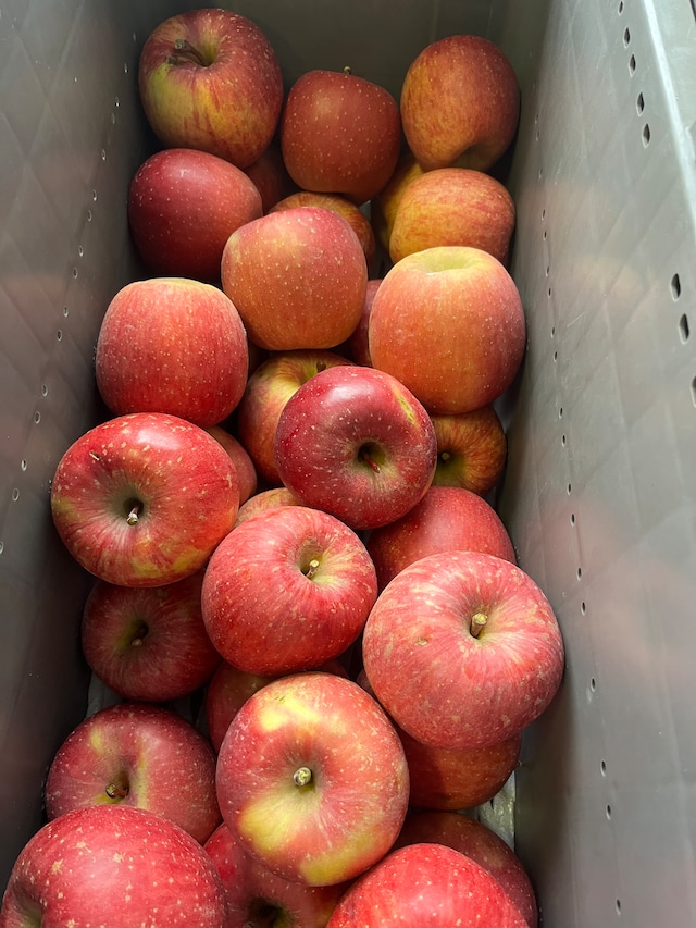 ※こちらは送料込みの商品です。 岩手県でうまれた『はるか』という品種がありまして、それはそれは美味しい品種でございましたので当園でも栽培することにした次第。 私があの時食べたはるかに近づけるようにコツコツとやっております。 2025年産は無袋栽培でしたのでサンはるかです。収穫日を我慢して12月入るかどうかのあたりまで引っ張れたらよかったのかもしれませんが、今年は11月20日頃の収穫。木が若いので蜜入りも『私があの時食べたはるか』にはまだ遠く、今は蜜も抜けてきてます。 それでも濃厚な甘さとしっかりした歯応えはありまして、葉とらずサンふじとはまた違う、私の愛する品種であることには違いない!ということで3キロ箱でのみ少量販売してみます。 サンはるか特有の果皮のサビっぽい感じもありますが、これはこれでカッコいいです。 まだ希少なのでお値段高めでございます。 葉とらずサンふじと詰め合わせも対応◎その場合、葉とらずサンふじは4個まででお願いします。 ご注文の際、備考欄に記入お願いします。